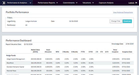Support transaction, market value and performance of hedge funds, private partnerships, marketable securities and SMAs